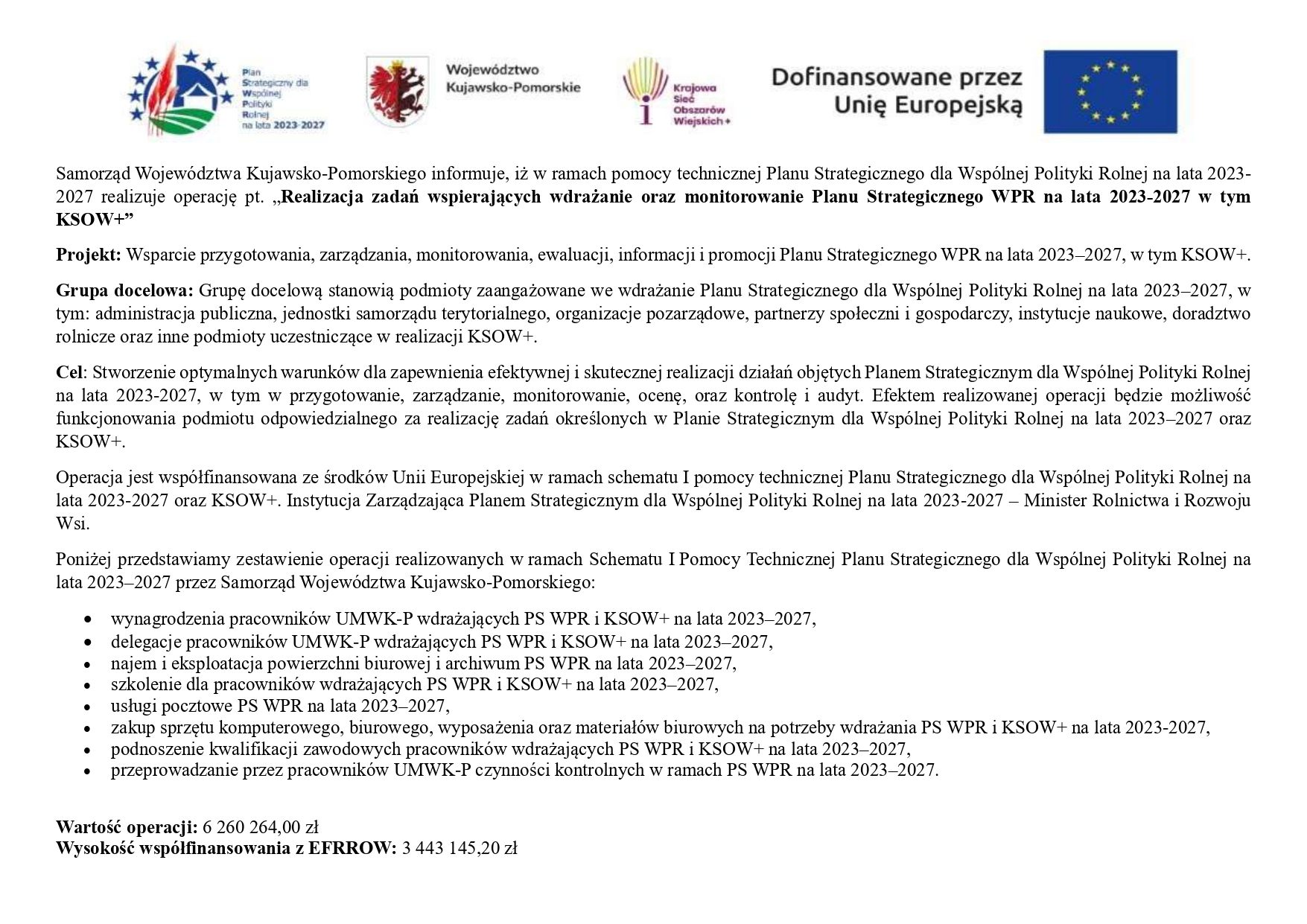 Realizacja zadań wspierających wdrażanie oraz monitorowanie Planu Strategicznego WPR na lata 2023-2027 w tym KSOW+?